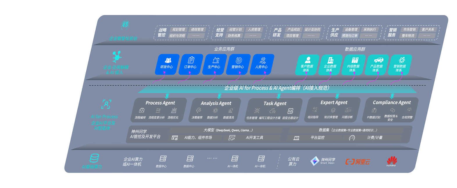 龙门国际问学智车解决方案是一套基于AI技术的汽车行业智能化系统,,,覆盖从底层算力到顶层AI应用的全栈方案。。方案由算力层、、、、模型层和应用层组成:算力层,,,方案支持多种一体机配置,,具备云端灵活部署、、、多云适配以及动态优化计算资源的能力;模型层,,,,龙门国际问学平台版提供了企业级AI应用一站式构建与管理平台,,,支持基于后训练强化技术的汽车企业专属模型的训练、、、、评测和运营;应用层,,,,龙门国际问学DeepSeek版提供包括超级员工、、智能招采、、智能营销、、、、智能客服、、AI for BI等一系列解决方案,,,可助力汽车行业实现数字化转型,,,,让管理更智能、、、、响应更敏捷。。。